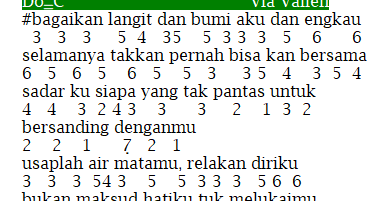 Not Angka Pianika Via Vallen Bagai Langit dan Bumi Pianika